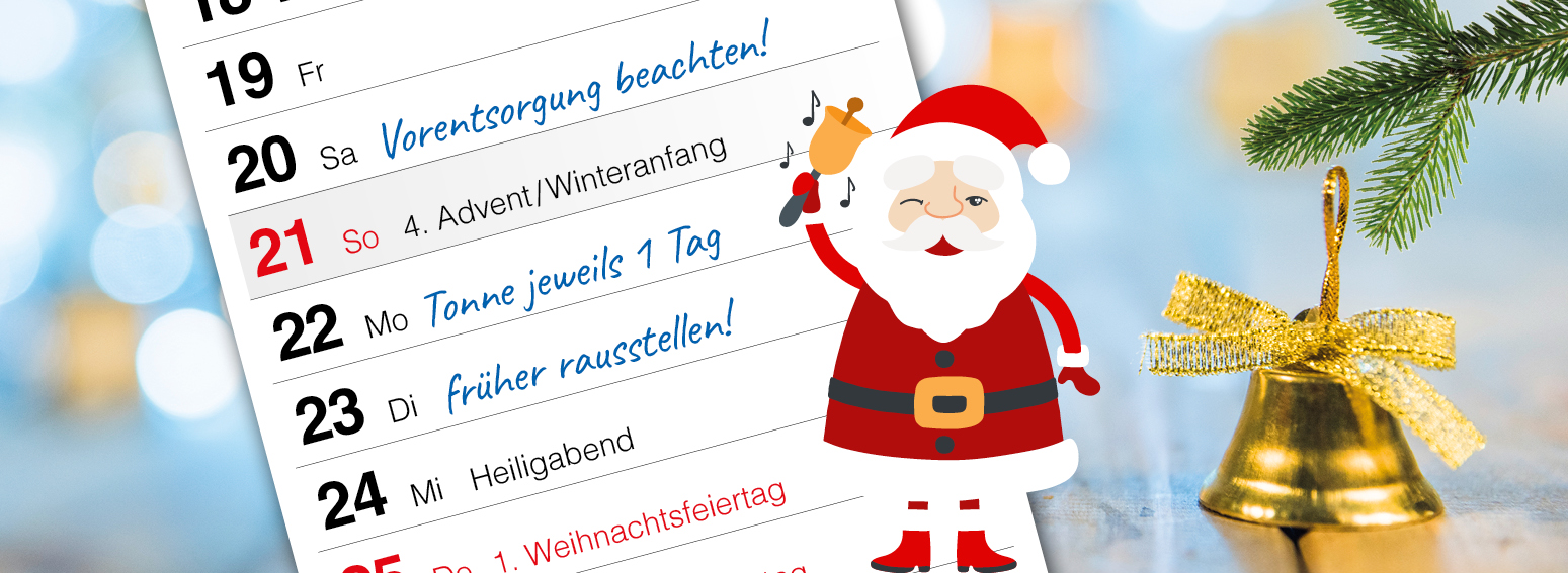 Aufgrund der Weihnachtsfeiertage verschieben sich die Entsorgungstermine.
