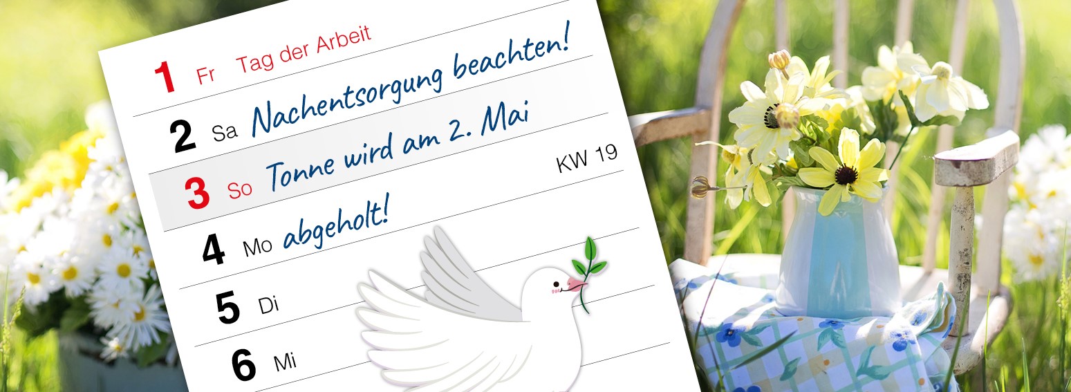 Aufgrund des Feiertages verschiebt sich der Entsorgungstermin von Freitag auf Samstag, 2. Mai 2026.